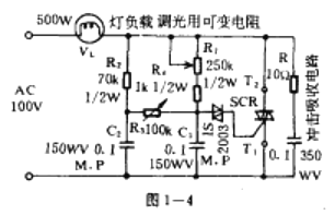 圖1一4所示的電路,是一種無滯后寬范圍的調光電路。它的調光原理是調節R1改變C1的充電時間使SCR